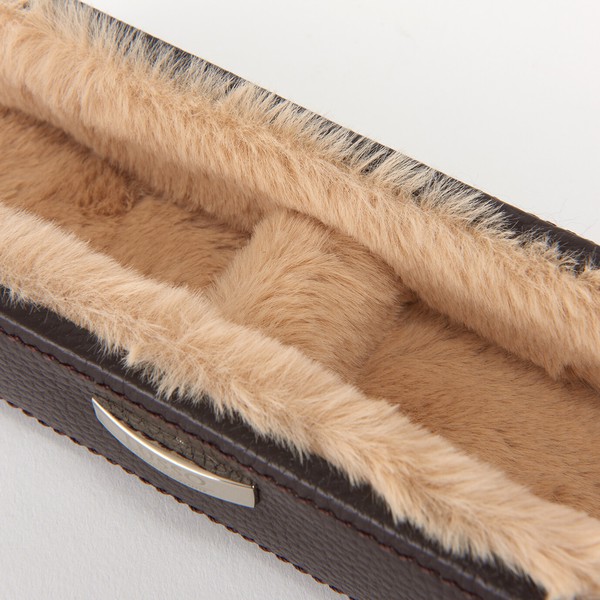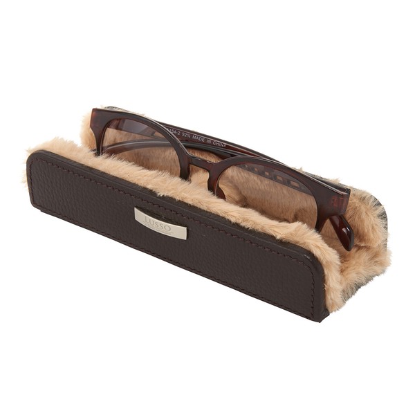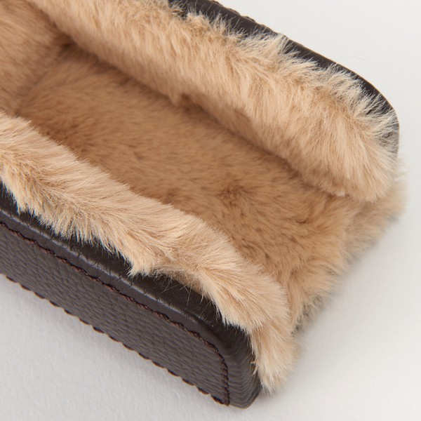 牛革を使用した、横置きタイプの本革メガネスタンドです。LUSSOブランドのシンプルで上質なデザインが、デスクや寝室のサイドテーブルをワンランク上の空間に演出します。